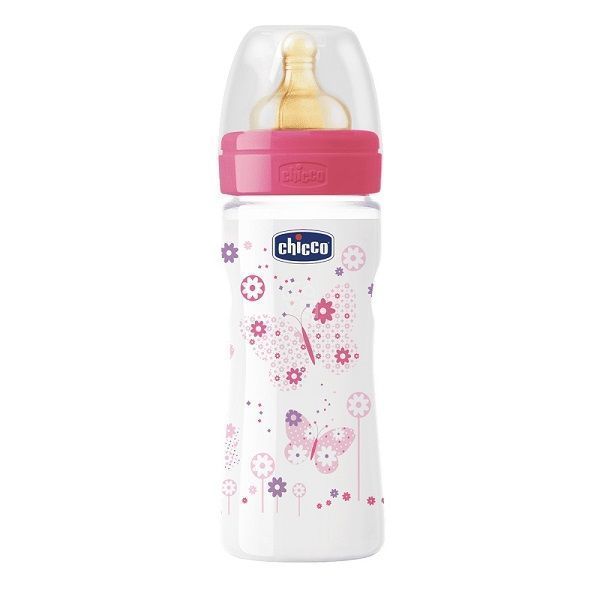 شیشه شیر طلقی چیکو Chicco با سری لاتکس 250 میلی لیتر صورتی