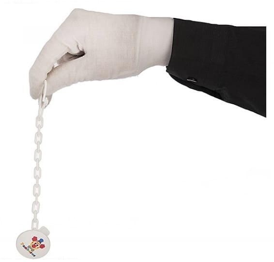محصولی که می‌بینیم بند پستانک زنجیری از برند «پنبه‌ریز» است. این بند پستانک دارای یک کلیپس عروسکی با طرح دلقک بوده که به لباس نوزاد وصل شده و سمت دیگر این بند پستانک دارای یک حلقه است که قابلیت وصل شدن به پستانک را دارد.