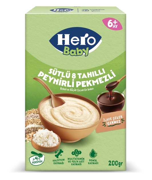 سرلاک هروبیبی 8 غله شیر پنیر و شیره انگور 200 گرم Hero Babyاز محصولات برند خوشنام ترک با شهرت جهانی است. هیروبیبی در تولید محصولات خود، حساسیت بالایی دارد و همین امر باعث شده تا برندی محبوب در دسته تولید غذای کودک در دنیا باشد. محصولات برند ترکیه ای هروبیبی (Hero Baby) با استفاده از مواد اولیه ارگانیک و با کیفیت بالا تولید می شوند. این محصولات شامل انواع سرلاک، پوره میوه و سبزیجات، بیسکویت و سایر غذاهای کمکی کودک می باشند. برخی از ویژگی های محصولات هروبیبی عبارتند از: