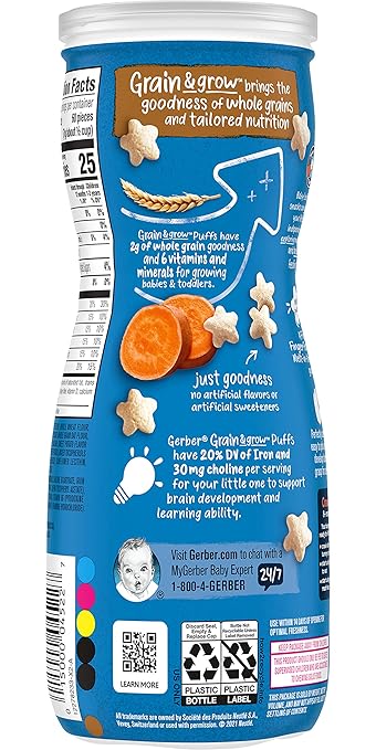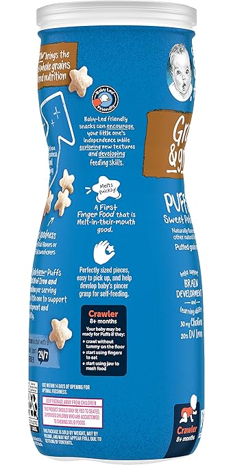 پاف با طعم سیب زمینی شیرین 42 گرمی گربر Gerber، یک انتخاب عالی برای میان‌ وعده‌های کودکان است. این محصول با برآمدگی‌های شکل ستاره‌ای جذابیت زیادی دارد که کودکان را به سوی مصرف آن جلب می‌کند. هر بسته شامل 42 گرم از این پاف‌های خوشمزه با طعم سیب زمینی شیرین است که حاوی غلات کامل و 5 نوع ویتامین و مواد معدنی مهم برای تغذیه سالم کودکان است. این محصول بدون استفاده از مواد تراریخته و GMO تولید شده است، بنابراین والدین مطمئن تر می‌توانند از این محصول برای تغذیه کودک خود استفاده کنند، علاوه بر این بافت این پاف‌ها به گونه‌ای طراحی شده است که به راحتی در دهان ذوب می‌شود و نیازی به جویدن با دندان ندارد. این ویژگی مهم از جانبی کودکان در مرحله اولیه تغذیه است که هنوز عادت به جویدن غذاهای جامد ندارند. پاف با طعم سیب زمینی شیرین 42 گرمی گربر Gerber، طعمی خوشایند و ترغیب‌کننده دارد که کودکان را به مصرف آن ها تشویق می‌کند. با توجه به این که این محصول همراه با نحوه تهیه و ذخیره‌سازی آسان است، والدین می‌توانند به راحتی آن را به عنوان یک انتخاب سالم برای میان‌وعده کودکان خود در نظر بگیرند. این محصول را می توانید از شیر خشک مارکت تهیه کنید.