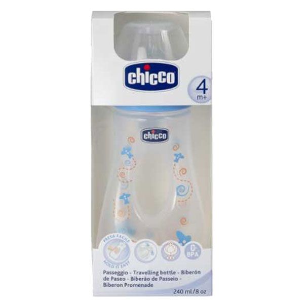 شیشه شیر طلقی ضد نفخ چیکو آبی حجم 240 میلی لیتر