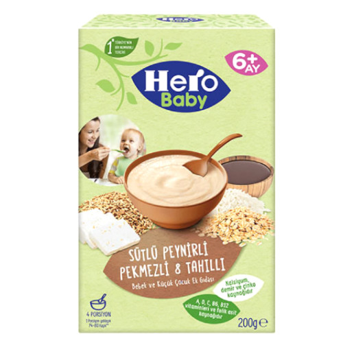سرلاک هروبیبی 8 غله شیر پنیر و شیره انگور 200 گرم Hero Babyاز محصولات برند خوشنام ترک با شهرت جهانی است. هیروبیبی در تولید محصولات خود، حساسیت بالایی دارد و همین امر باعث شده تا برندی محبوب در دسته تولید غذای کودک در دنیا باشد. محصولات برند ترکیه ای هروبیبی (Hero Baby) با استفاده از مواد اولیه ارگانیک و با کیفیت بالا تولید می شوند. این محصولات شامل انواع سرلاک، پوره میوه و سبزیجات، بیسکویت و سایر غذاهای کمکی کودک می باشند. برخی از ویژگی های محصولات هروبیبی عبارتند از: